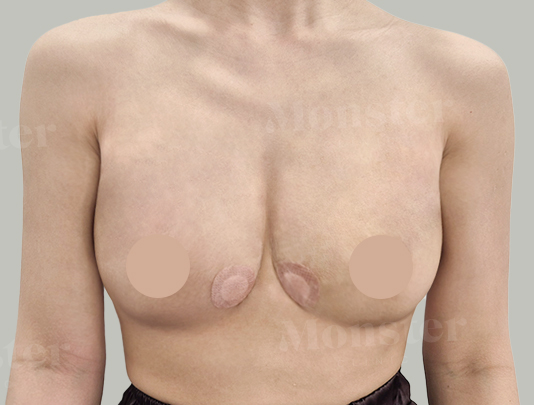 부족한 볼륨과 비대칭으로 아쉬운 가슴 라인